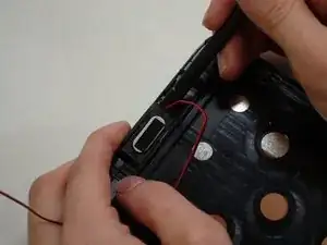 Осторожно снимите чёрную ленту с корпуса разъёма и отложите её. При сборке устройства ленту нужно будет вернуть на место.