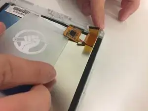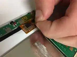 Осторожно отсоедините маленький шлейф, находящийся под плёнкой.
