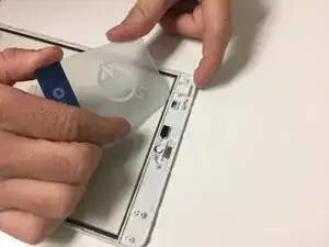 Используйте пластиковую карточку, чтобы отделить стекло от передней панели.
