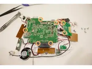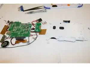 После снятия задней панели вы увидите материнскую плату и другие компоненты внутри Vtech InnoTab 3S.