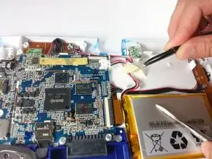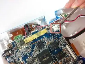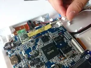 Теперь, когда батарея свободна для перемещения, отключите провод, соединяющий батарею с материнской платой.