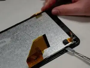 Сняв материнскую плату и аккумулятор, используйте металлическую лопатку, чтобы аккуратно удалить дисплей с передней панели.