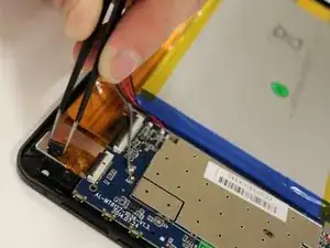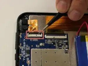Вставьте пинцет в чёрную часть ZIF‑разъёма и поднимите её вверх. При подъёме соединение освободит контактную ленточную шлейф‑плату.