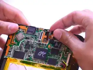 Используйте заостренный конец лопатки для поднятия камеры с материнской платы.