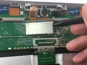 Используйте лопатку, чтобы поддеть фиксирующую скобу, накрывающую кабели камеры.