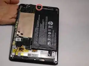 С помощью пластикового инструмента для открытия начните разбирать заднюю крышку планшета, работая вдоль краев.