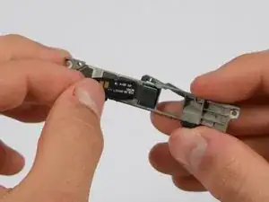 Теперь вам нужно поднять сборку задней камеры, которая закрывает конец медной полосы.