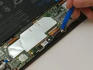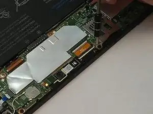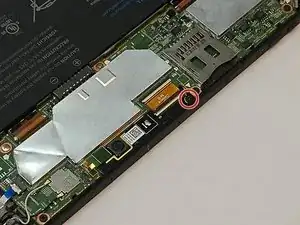 Аккуратно приподнимите камеру с помощью пластикового инструмента для вскрытия и извлеките её из планшета.