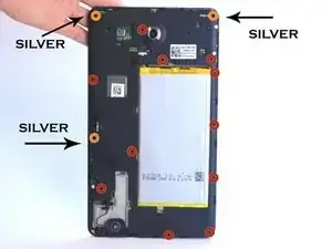 Удалите 14 винтов с помощью отвертки Torx T-5. (11 черных винтов 3,6 мм и три винта 4,45 мм)