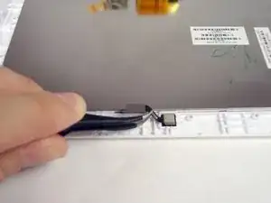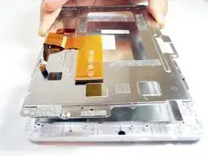 На металлической пластине внутри устройства есть петлевой ленточный кабель. Переверните белый фиксатор и вытяните кабель.