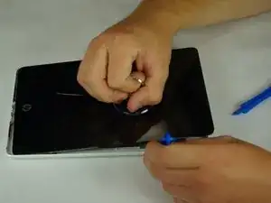 Используя пластиковый инструмент для открытия, подденьте по краям дисплея, одновременно тянув вверх с помощью присоски.