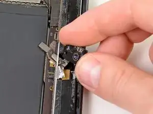 Осторожно выньте камеру из iPad, протягивая кабель камеры через вырез в алюминиевой раме.