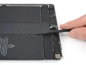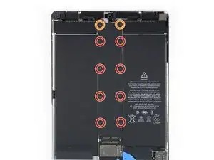 Обратите внимание, что разъём батареи имеет консольные пружины на логической плате, которые прижимают контакты батареи. Поскольку и логическая плата, и батарея приклеены, вам потребуется провести тонким гибким предметом между контактными площадками, чтобы отключить батарею.