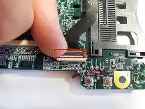 Поднимите экран от материнской платы, потянув плату от трех металлических зажимов.