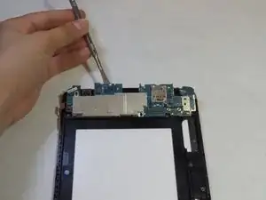 Снимите все серебристые винты 3 мм и чёрные винты 2 мм на материнской плате и аккуратно извлеките её из устройства.