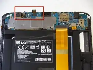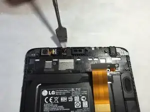 Используйте пластиковый инструмент для вскрытия, чтобы поднять фронтальную камеру из устройства.