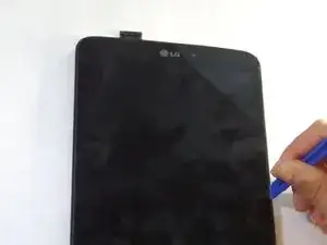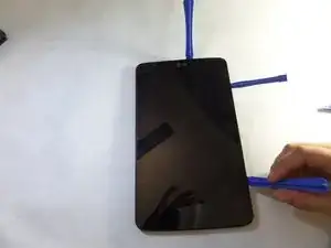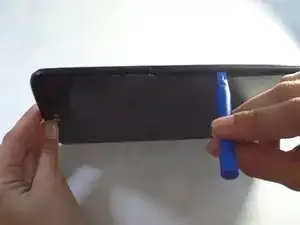 Вставьте пластиковый инструмент для вскрытия в узкую щель между экраном и задней панелью.