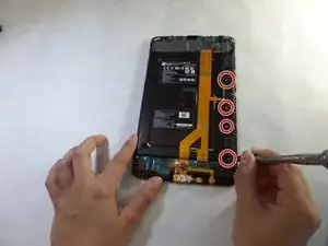 Отверткой Phillips #000 отвинтите два 3 мм винта, расположенные внизу ленточного кабеля.