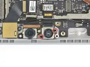 Используйте пинцет, чтобы отсоединить кабель антенны, перекрывающий ленточные кабели камер.