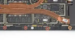 Используйте отвёртку Torx T3, чтобы вывернуть четыре винта 2,4 мм, фиксирующие EMI-экран.