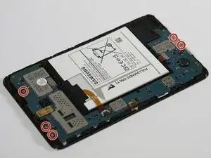 Используя отвёртку Phillips #00, выкрутите пять винтов длиной 4 мм, которые крепят материнскую плату к корпусу устройства.