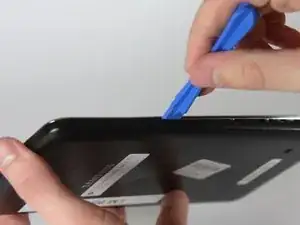 Вставьте пластиковое раздвижное приспособление в зазор между корпусом устройства и задней панелью с любой стороны.