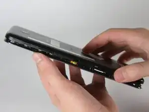Перемещайте раздвижное приспособление вдоль краёв устройства, чтобы отсоединить заднюю панель от корпуса.