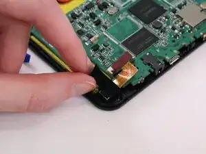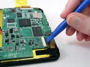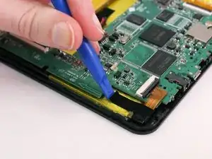 Используйте синий пластиковый инструмент для вскрытия, чтобы поддеть корпус планшета.