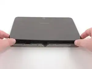 Проведите лопаткой вдоль края задней крышки, пока не освободите пластиковые зажимы, крепящие заднюю крышку к дисплею.