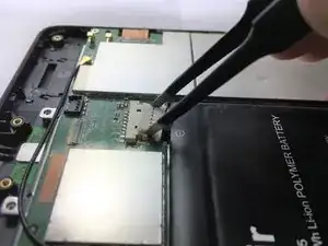С помощью пинцета осторожно приподнимите разъём, чтобы отсоединить его от материнской платы.