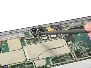 Используйте заостренный конец лопатки, чтобы отсоединить ИК-камеру от материнской платы.