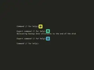 Введите i и укажите номер раздела, когда будет запрос. (В этом примере 15)