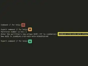 В режиме expert вы можете ввести c, чтобы изменить GUID. Вам снова будет задан вопрос о номере раздела.