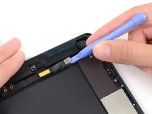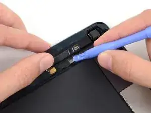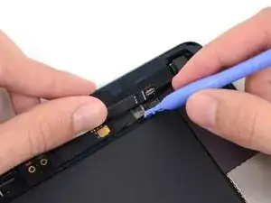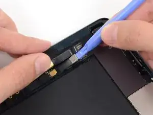 Используйте пластиковый инструмент для открывания, чтобы поддеть разъём ЖК‑экрана и отсоединить его от гнезда на плате.
