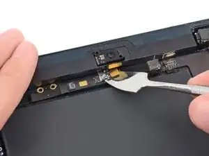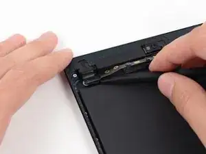 Проведите лопатку вокруг верхнего левого угла iPad, чтобы отделить клей.