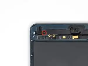 Удалите один винт Phillips длиной 4,4 мм, фиксирующий разъем для наушников к задней крышке.