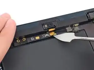 Держа ЖК‑дисплей одной рукой, перейдите к левой стороне iPad и повторите процедуру предыдущего шага, чтобы отделить вторую ленту.