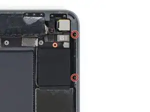 Используйте крестовую отвертку, чтобы выкрутить два винта 1,3 мм, фиксирующие крепление кабеля дисплея.