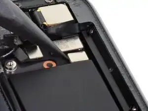 Не сгибайте кабель батареи слишком далеко за вертикальное положение, чтобы не повредить его. Вам нужно только достаточно места, чтобы отключить пресс-разъёмы дисплея и предотвратить контакт разъёма батареи с его гнездом во время ремонта.