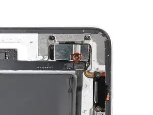 Снимите следующие винты с разъёма кабеля блока кнопок питания/регулировки громкости: