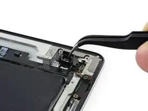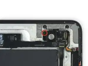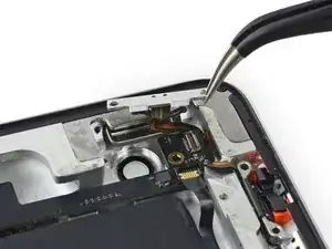 Снимите один винт Phillips 3,3 мм, крепящий металлическую планку держателя задней камеры.