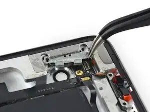Иглой рычага подденьте фиксирующий язычок ZIF-разъёма шлейфа кнопок.