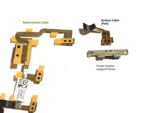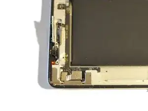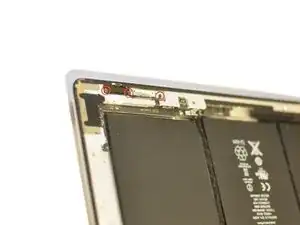 Вам нужно аккуратно отклеить старый кабель от каркаса iPad и двух металлических поддержек (одна для кнопки питания, одна для ползунка и кнопок громкости).