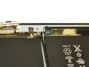 Присоединять прямоугольный разъём кабеля непросто, так как зазор от края корпуса iPad небольшой. Может быть полезно аккуратно подтолкнуть его пластиковым инструментом для вскрытия, пока он не защёлкнется на месте.
