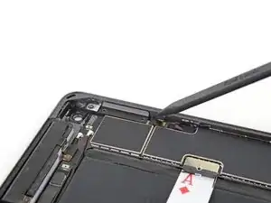 Скрутите две монтажные лопатки в левых углах iPad, чтобы слегка приподнять оцифровщик, окончательно отделяя последний клей.