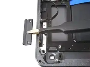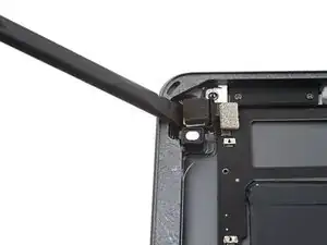 Поверните два медиатора на левых углах iPad, чтобы слегка приподнять дигитайзер, тем самым отделяя оставшийся клей.