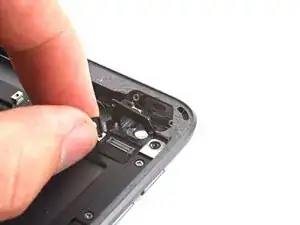Повторите ту же процедуру, чтобы отклеить шлейф управления громкостью от нижней кнопки громкости.