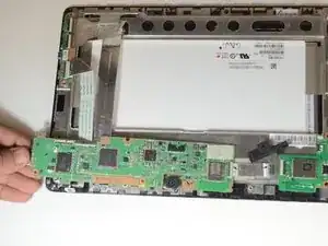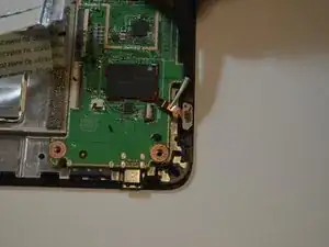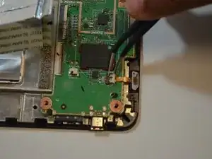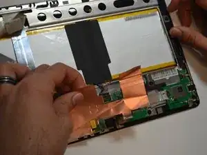 Отклейте электротехническую ленту, фиксирующую соединения материнской платы к раме устройства.