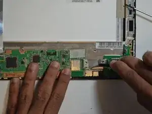 Пинцетом отсоедините ленточные кабели от их разъемов, присоединённых к материнской плате.
