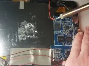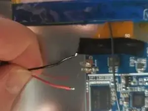 Распаяйте красный и чёрный провода, соединяющие аккумулятор с материнской платой, и снимите аккумулятор.